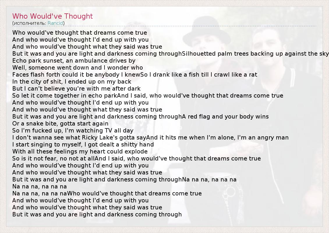 А как ты думаешь, о чем песня "Who Would've Thought" ?