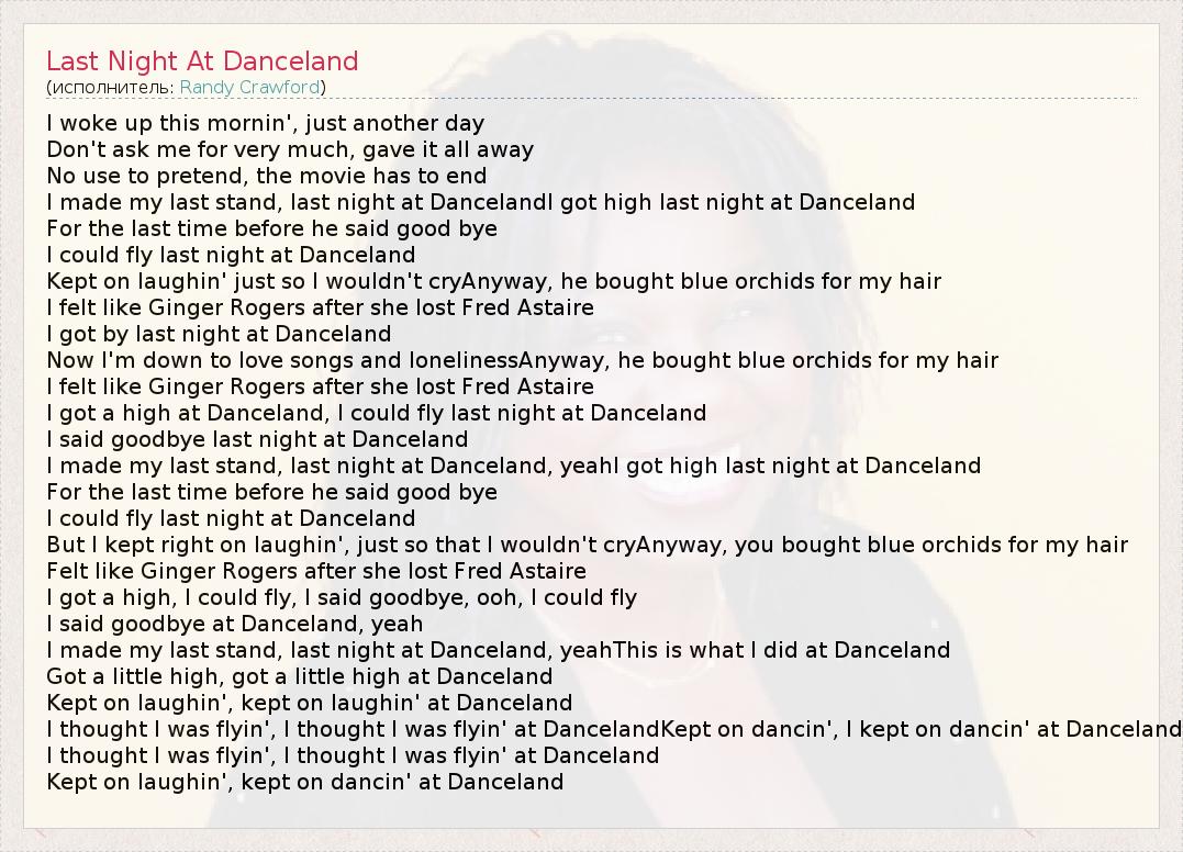 А как ты думаешь, о чем песня "Last Night At Danceland" ?