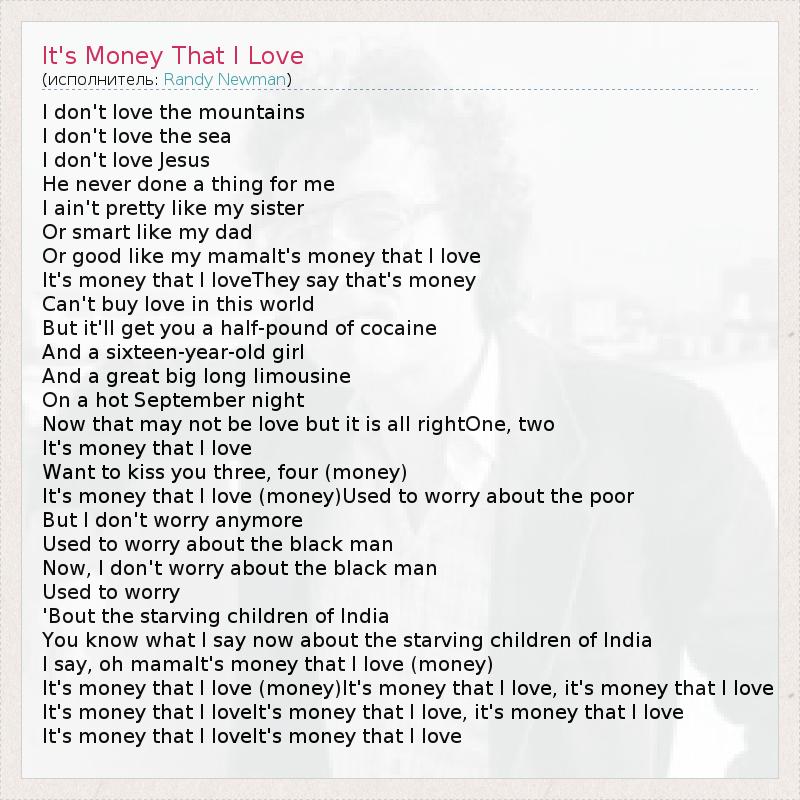А как ты думаешь, о чем песня "It's Money That I Love" ?