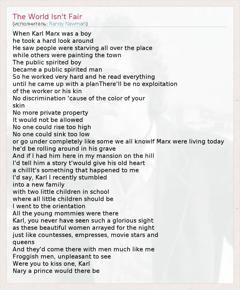А как ты думаешь, о чем песня "The World Isn't Fair" ?