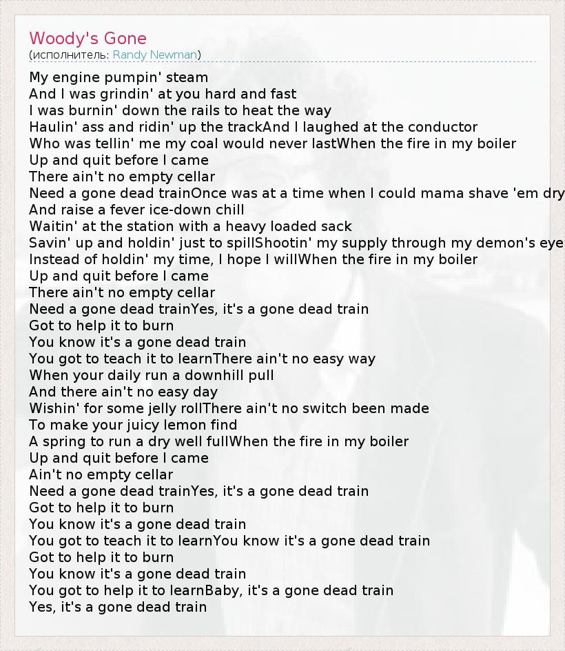 А как ты думаешь, о чем песня "Woody's Gone" ?