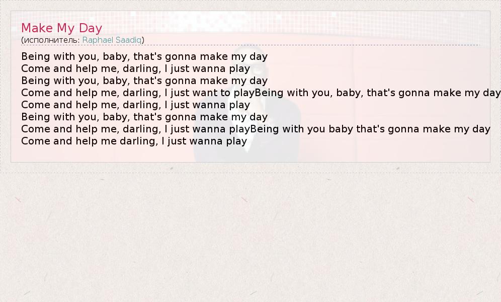 Come and help me, darling, I just wanna playBeing with you baby that's gonna make my day