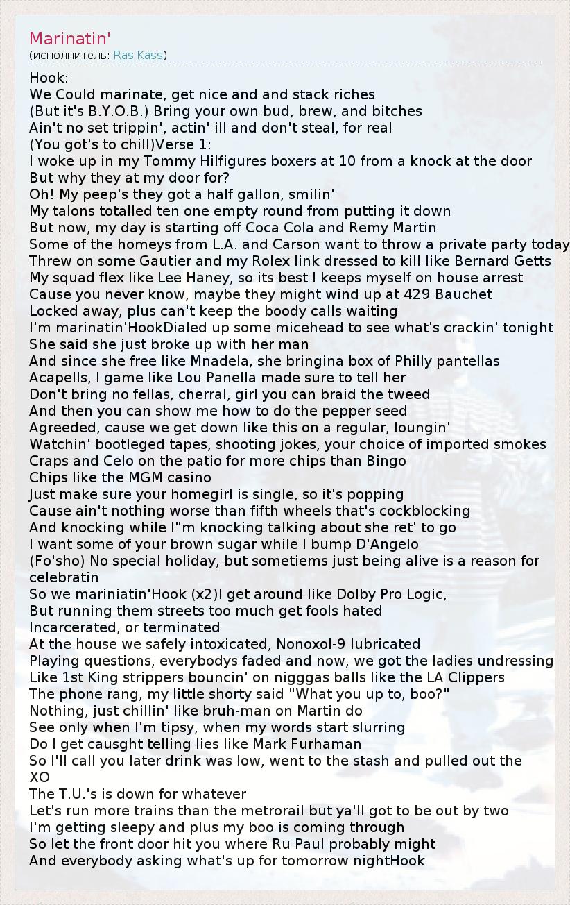 А как ты думаешь, о чем песня "Marinatin'" ?