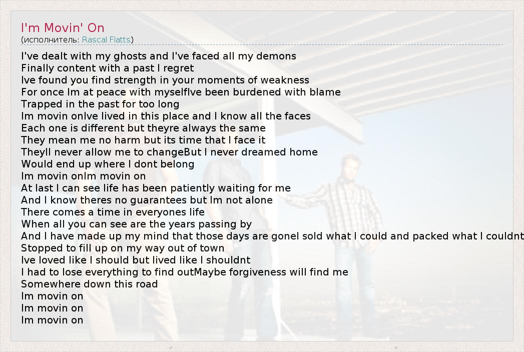 А как ты думаешь, о чем песня "I'm Movin' On" ?