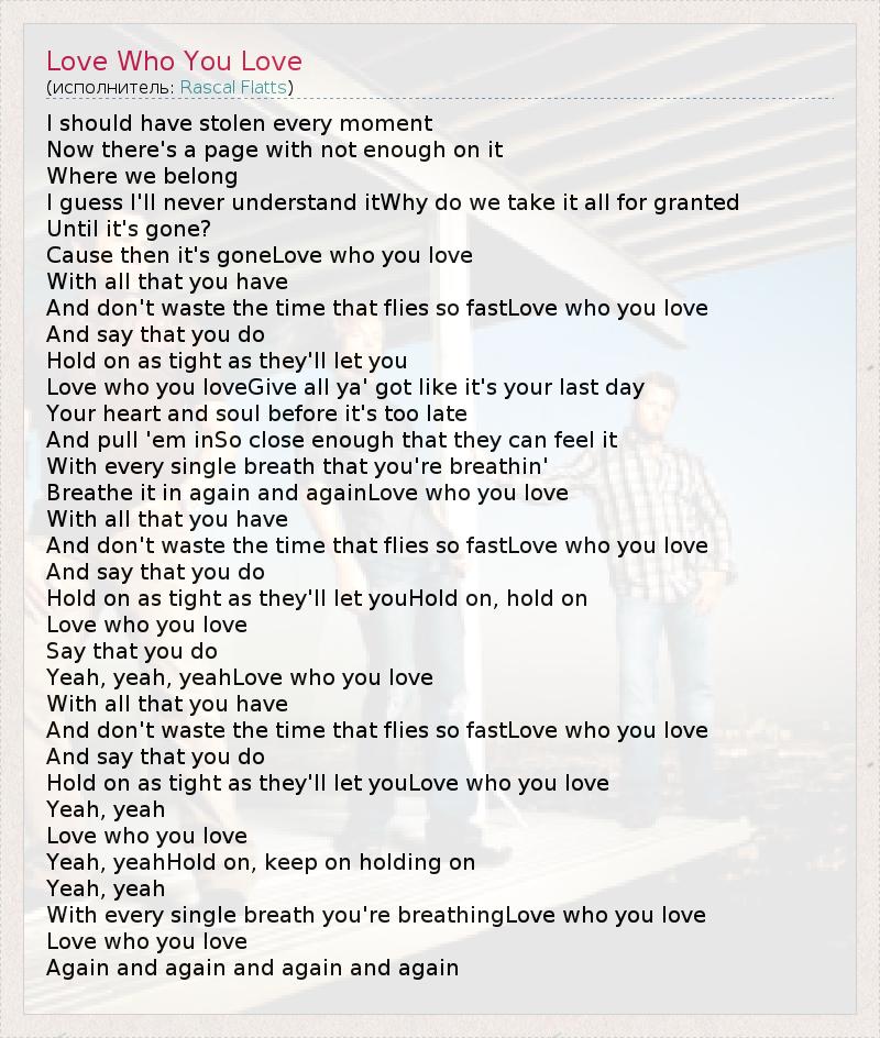 А как ты думаешь, о чем песня "Love Who You Love" ?