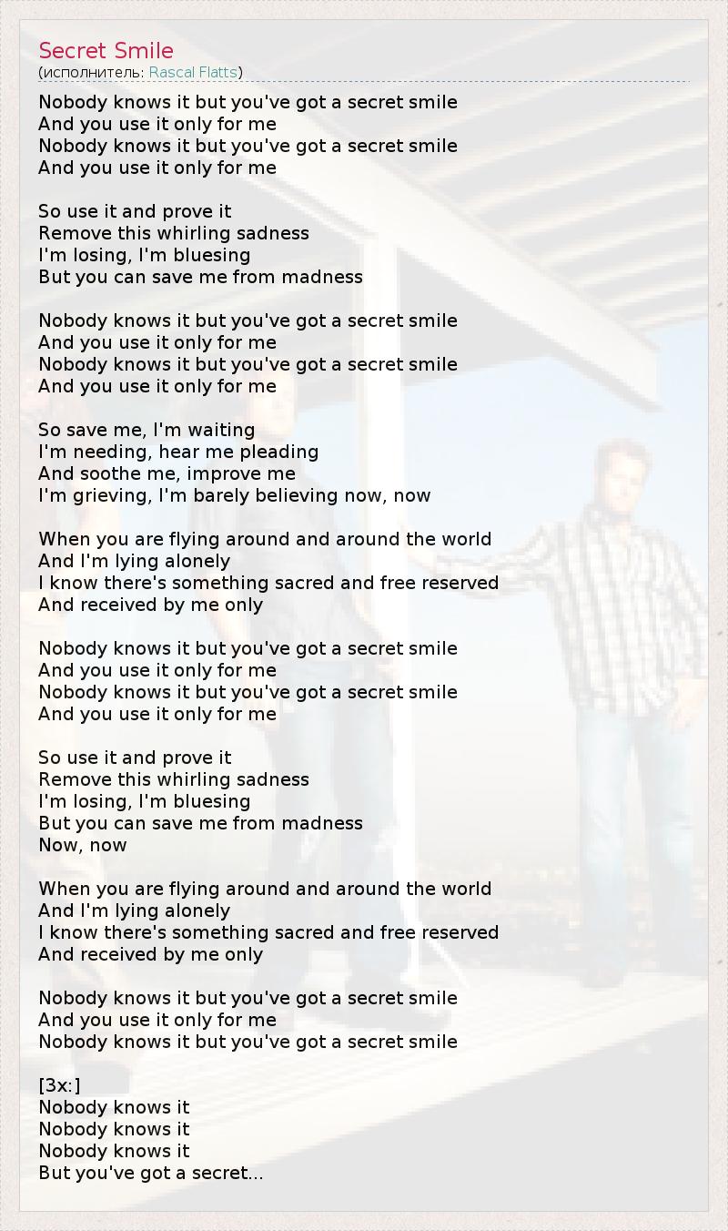 А как ты думаешь, о чем песня "Secret Smile" ?