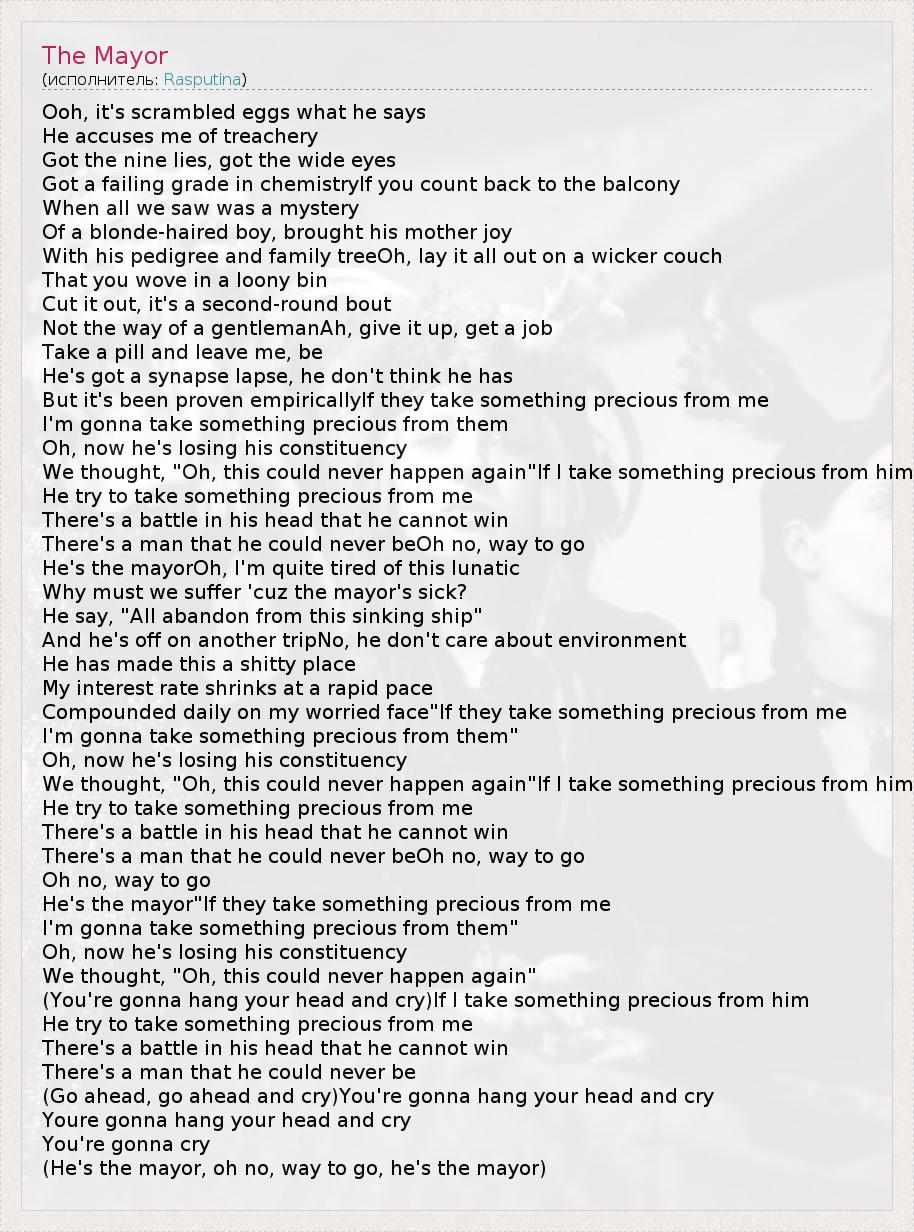 А как ты думаешь, о чем песня "The Mayor" ?