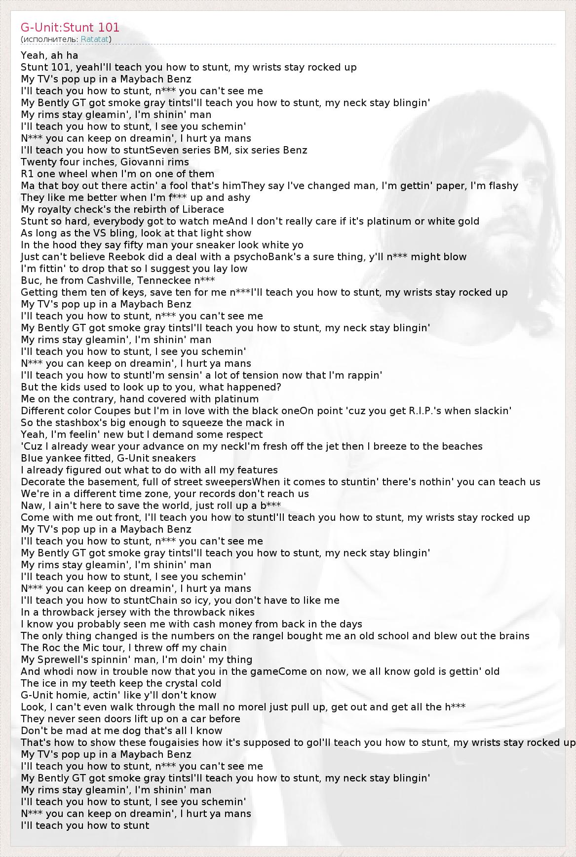 А как ты думаешь, о чем песня "G-Unit:Stunt 101" ?