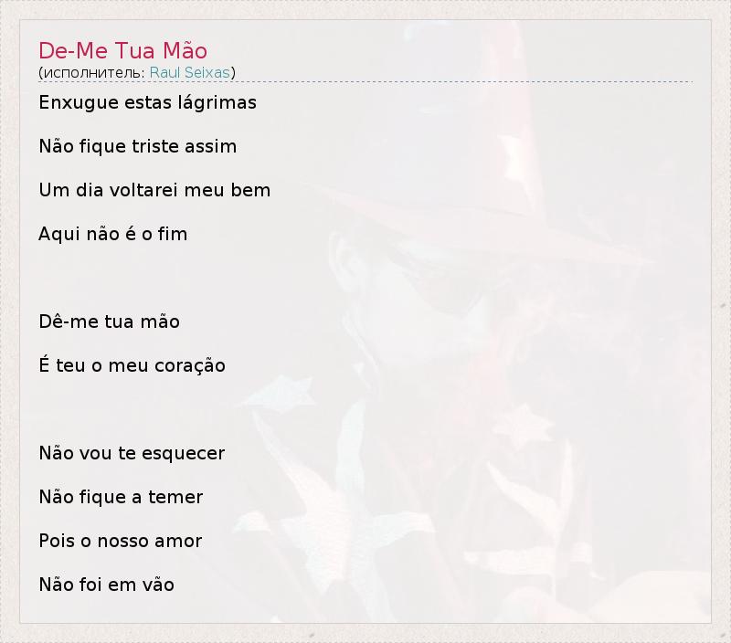 А как ты думаешь, о чем песня "De-Me Tua Mão" ?