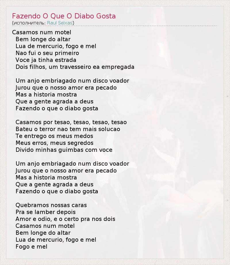 А как ты думаешь, о чем песня "Fazendo O Que O Diabo Gosta" ?
