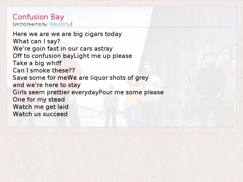 А как ты думаешь, о чем песня "Confusion Bay" ?
