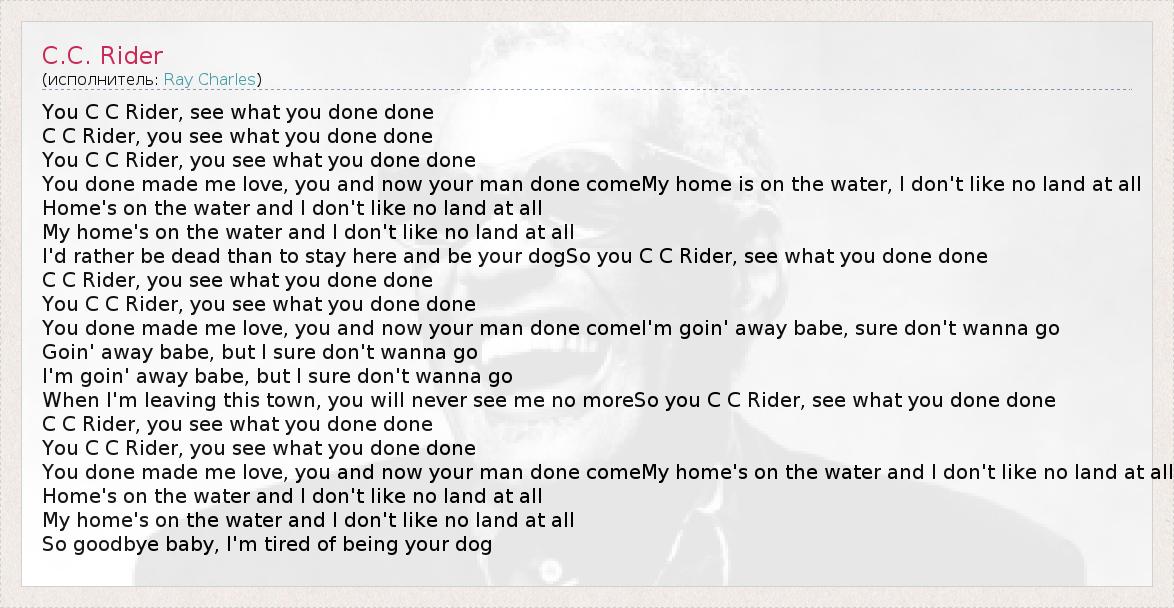 А как ты думаешь, о чем песня "C.C. Rider" ?