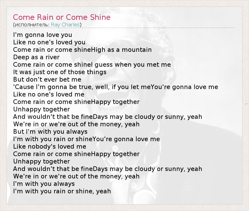 А как ты думаешь, о чем песня "Come Rain or Come Shine" ?