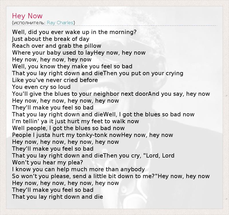 So won't you please, send a little bit down to me?"Hey now, hey now