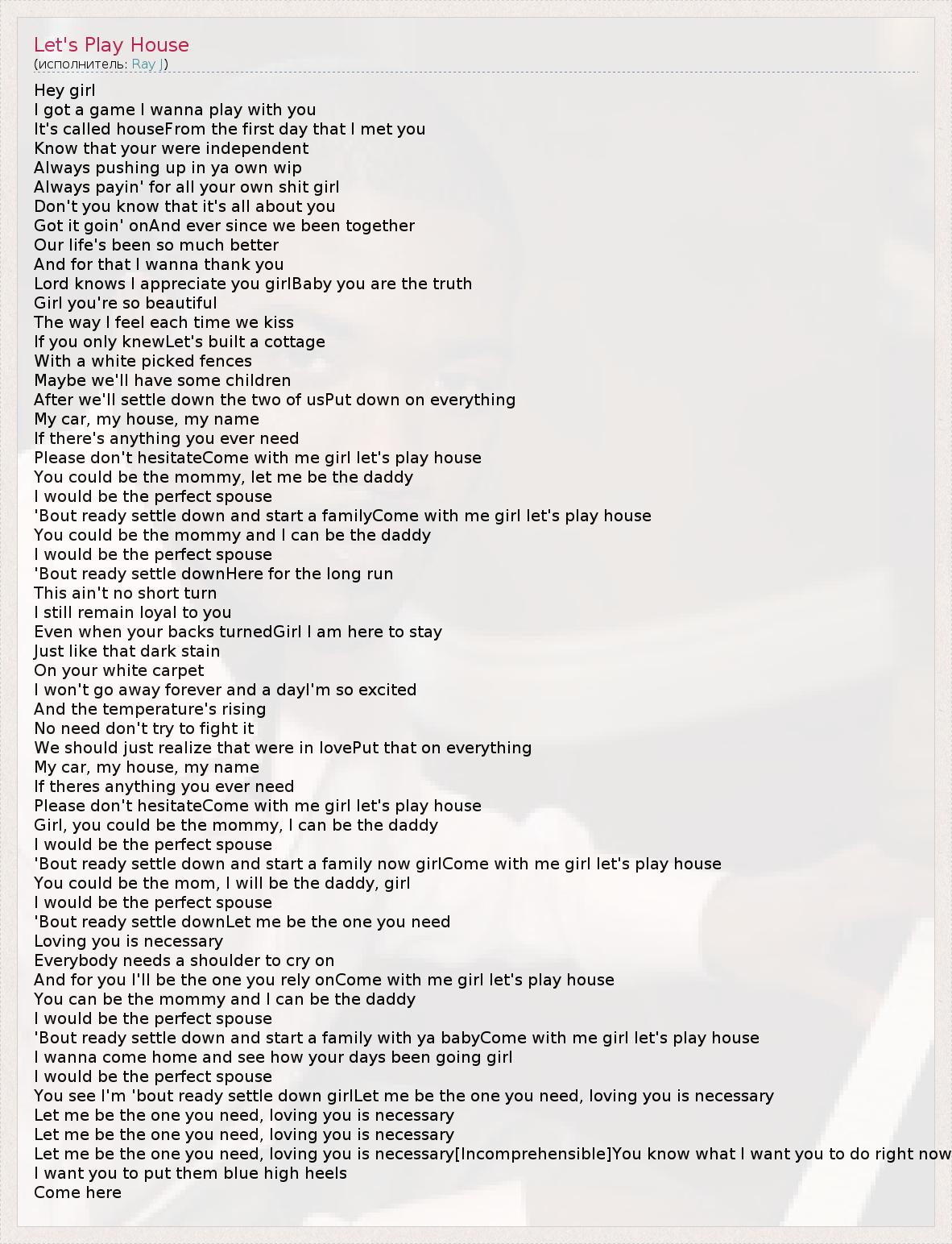 А как ты думаешь, о чем песня "Let's Play House" ?