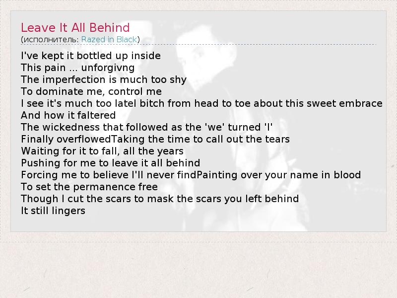 А как ты думаешь, о чем песня "Leave It All Behind" ?