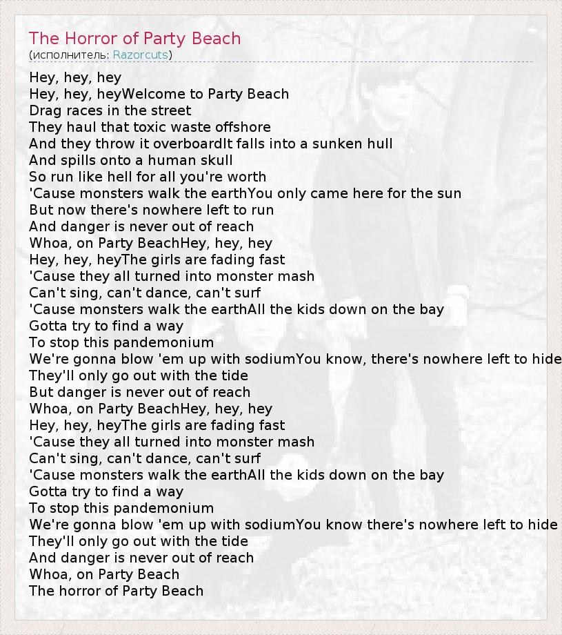 А как ты думаешь, о чем песня "The Horror of Party Beach" ?