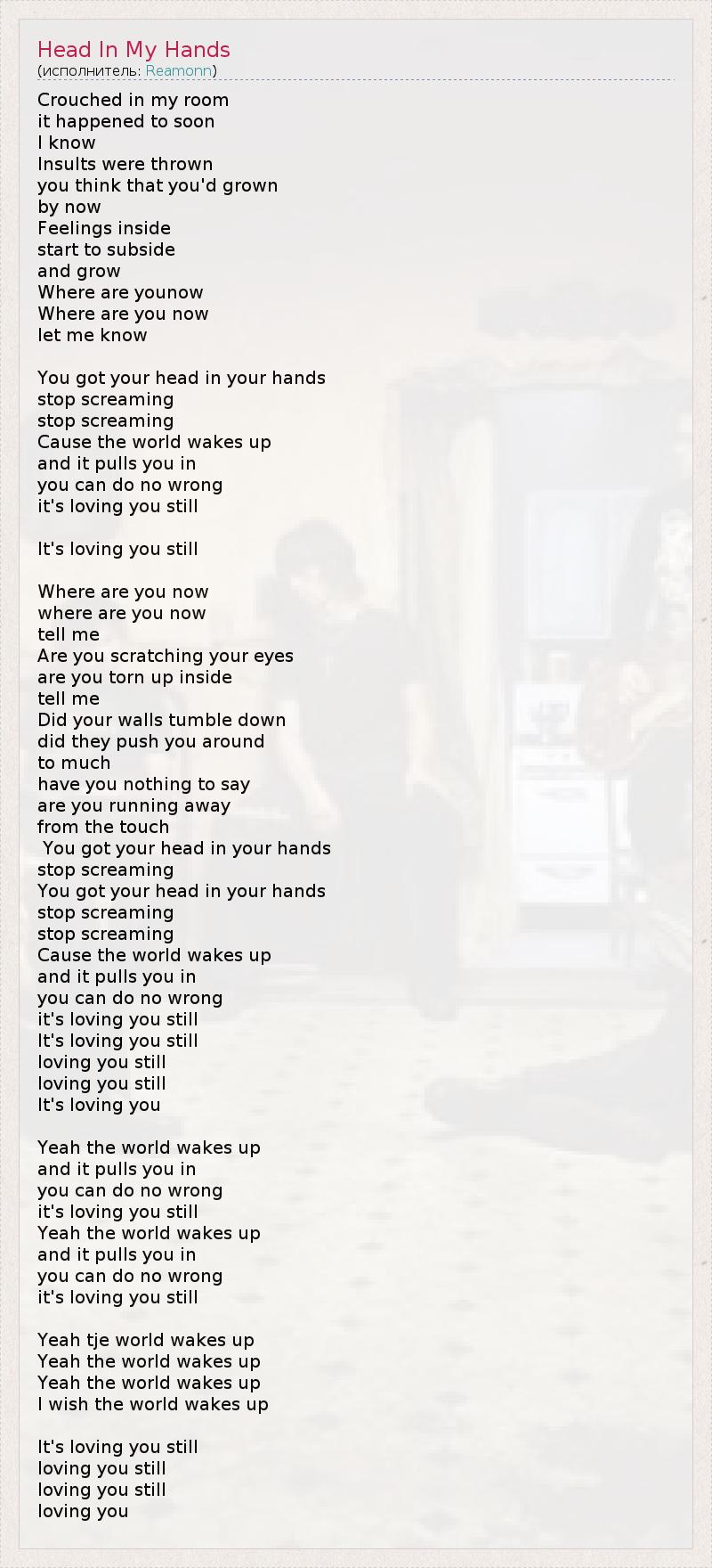 А как ты думаешь, о чем песня "Head In My Hands" ?