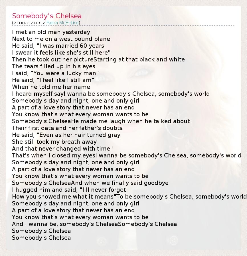 А как ты думаешь, о чем песня "Somebody's Chelsea" ?
