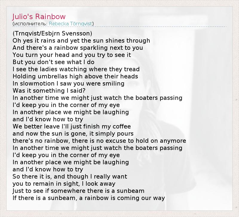А как ты думаешь, о чем песня "Julio's Rainbow" ?