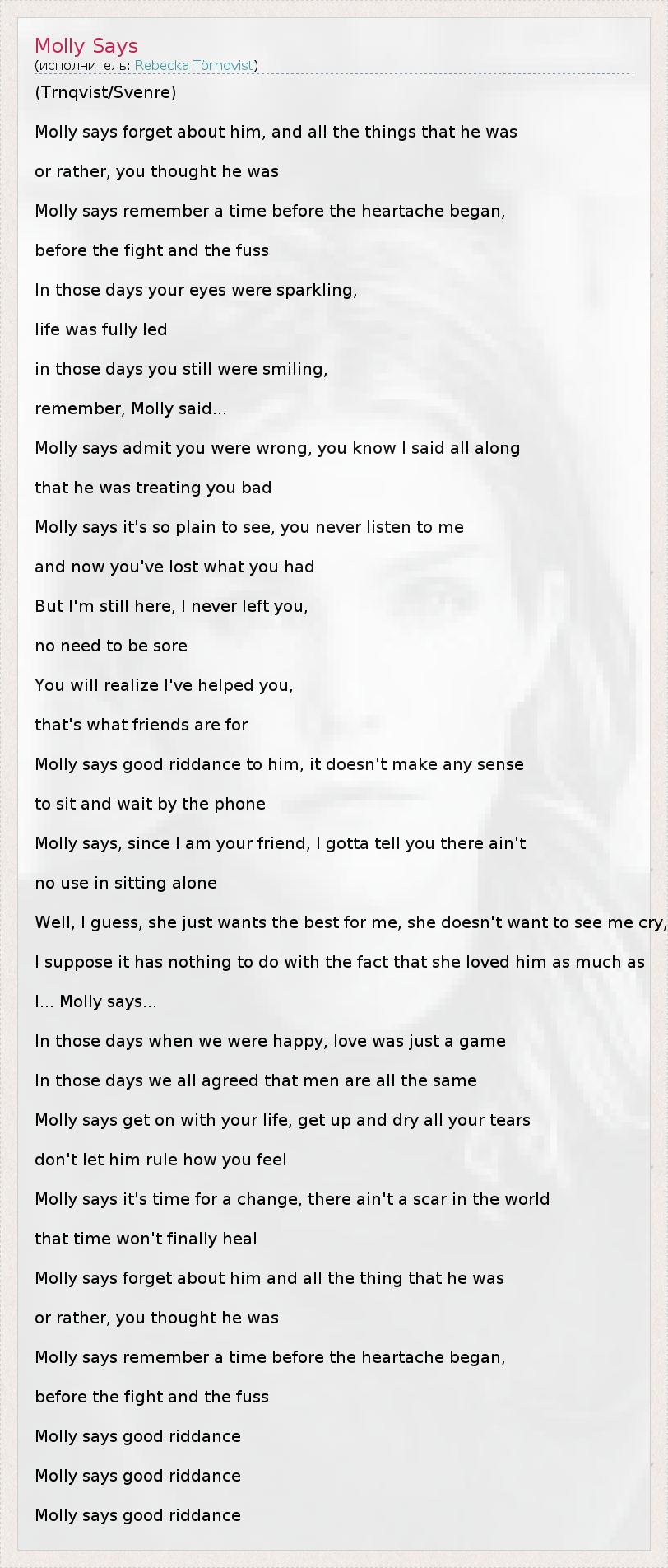 А как ты думаешь, о чем песня "Molly Says" ?