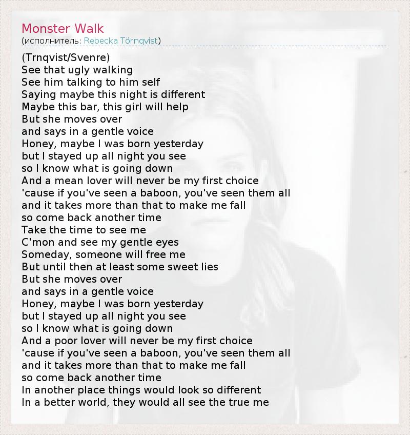 А как ты думаешь, о чем песня "Monster Walk" ?