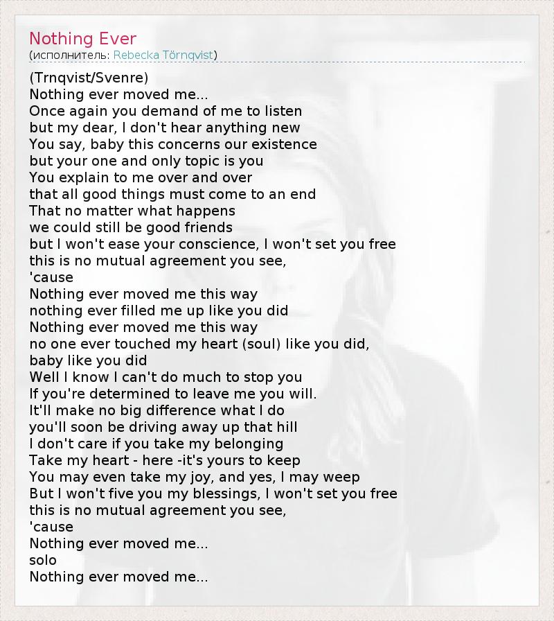А как ты думаешь, о чем песня "Nothing Ever" ?