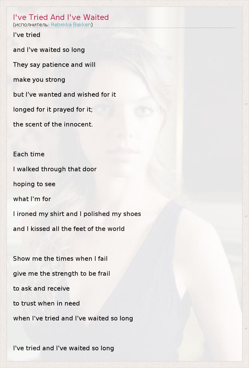 when I've tried and I've waited so long