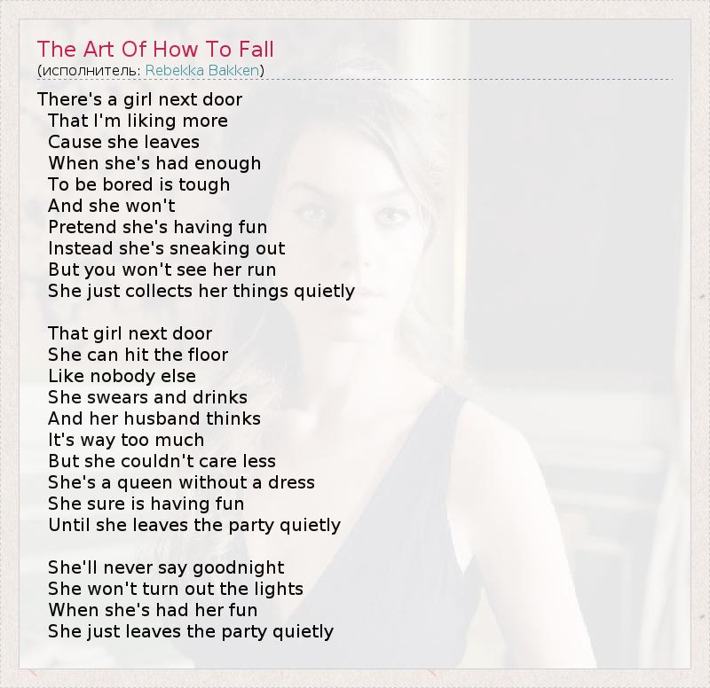 А как ты думаешь, о чем песня "The Art Of How To Fall" ?