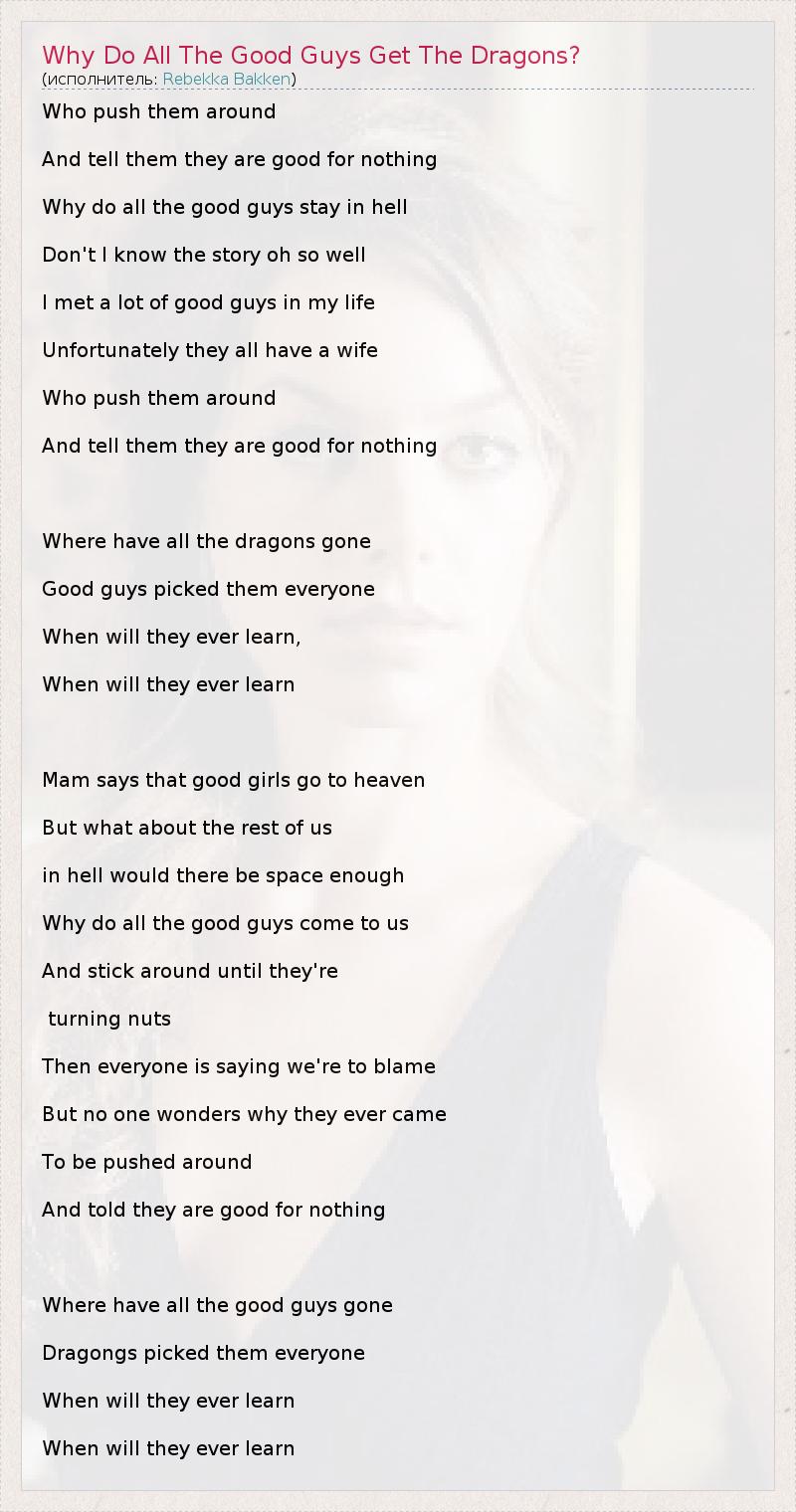 А как ты думаешь, о чем песня "Why Do All The Good Guys Get The Dragons?" ?