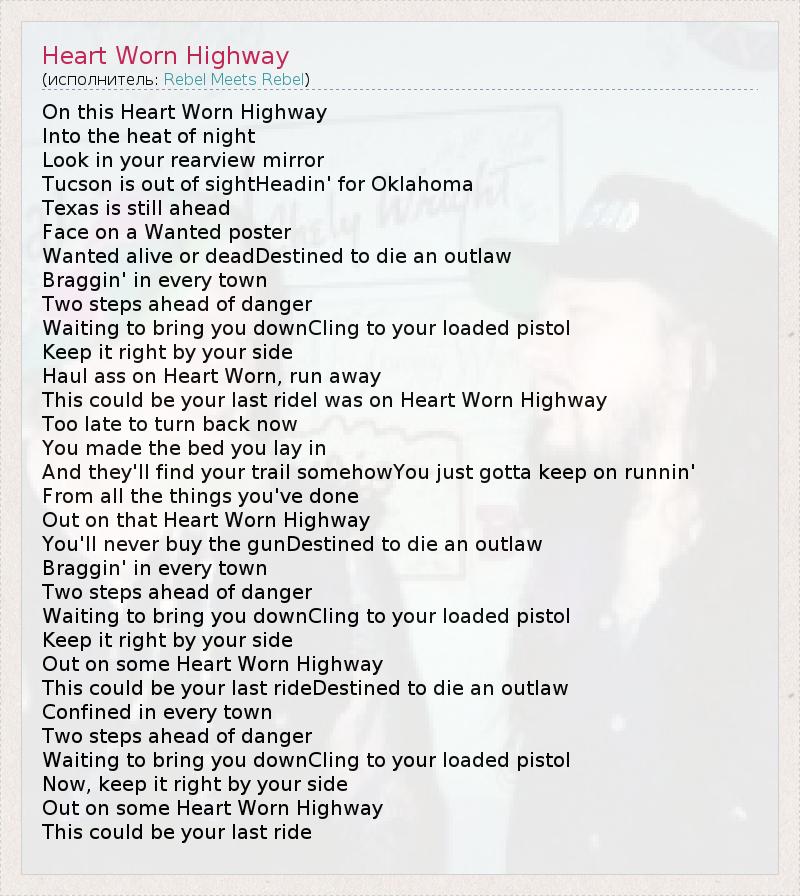 А как ты думаешь, о чем песня "Heart Worn Highway" ?