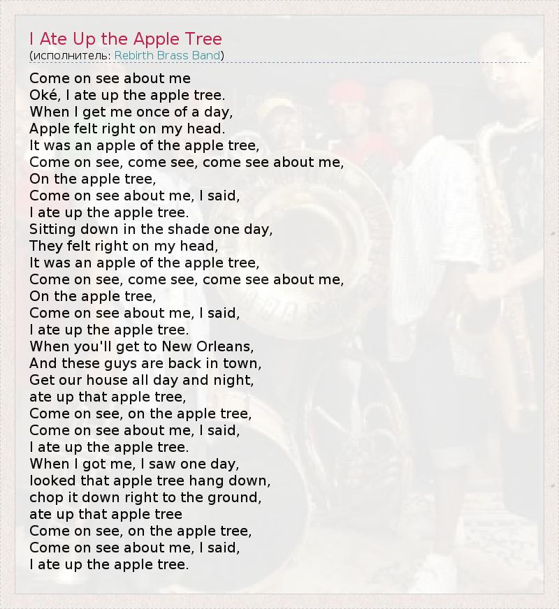 А как ты думаешь, о чем песня "I Ate Up the Apple Tree" ?