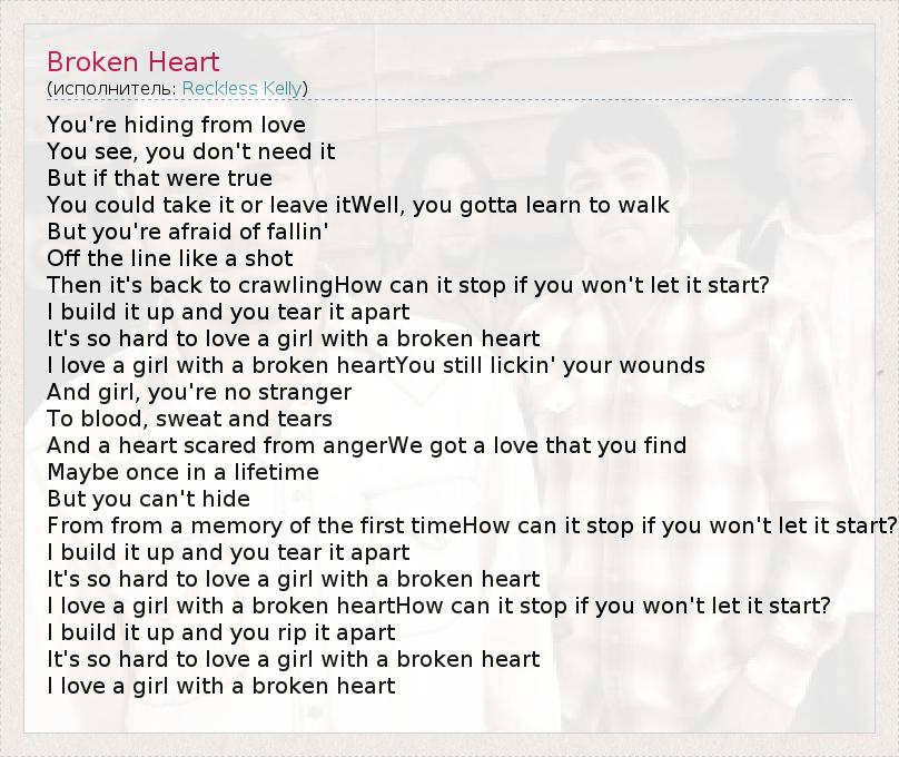 А как ты думаешь, о чем песня "Broken Heart" ?