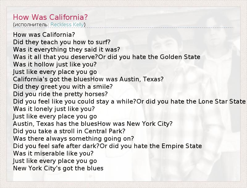 Это интересно:В далеком 1996 году в штате Орегон братьями Вилли и Коди Бранунами была основана команда Reckless Kelly. Называние было взято наобум, лишь только потом ребята узнали о знаменитом австралийском грабителе банков Неде Келли. Вскоре ребята перееехали в Техас и вскоре стали одним из самых заметных явлений на местной сцене. Но музыку группы отказвались крутить по обычным кантри-радио, мотивируя это... продолжение