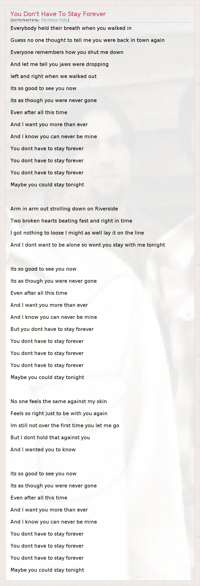А как ты думаешь, о чем песня "You Don't Have To Stay Forever" ?