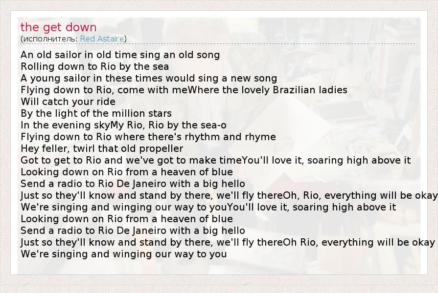 Got to get to Rio and we've got to make timeYou'll love it, soaring high above it