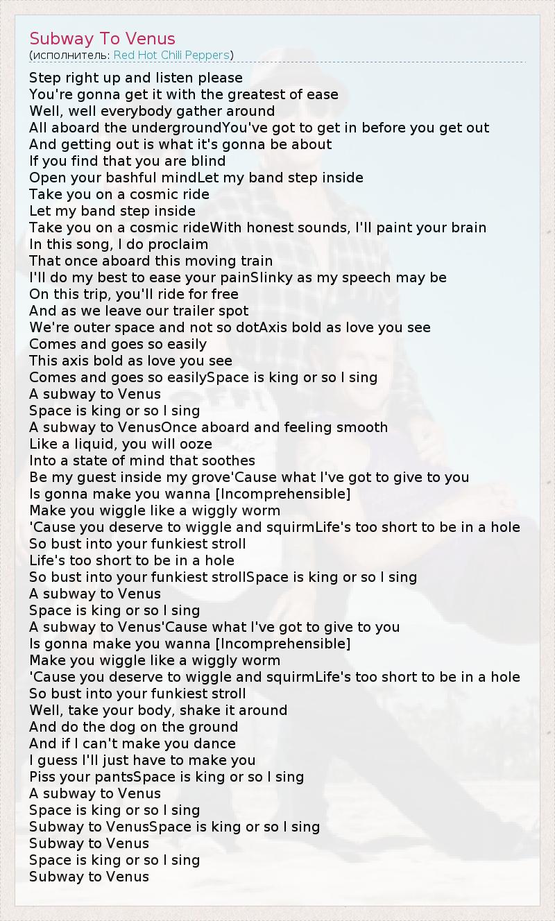 А как ты думаешь, о чем песня "Subway To Venus" ?