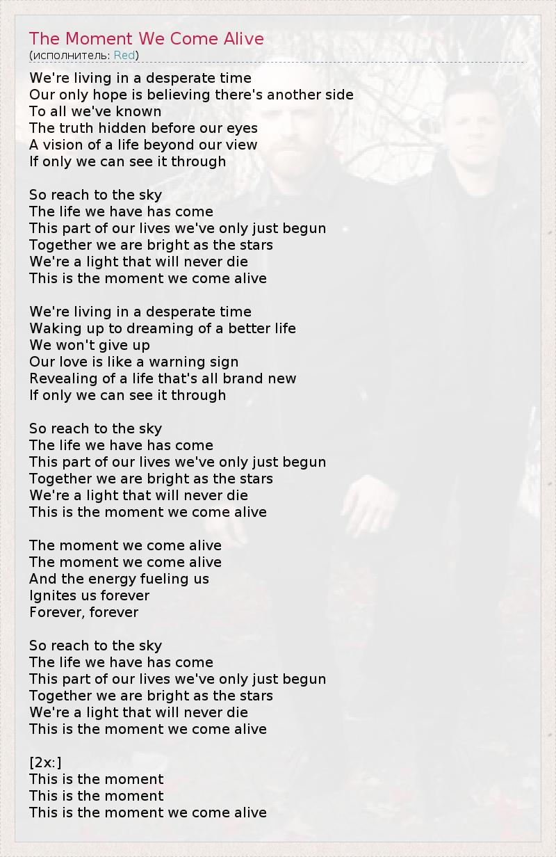 ГлавнаяИсполнителиRedThe Moment We Come Alive