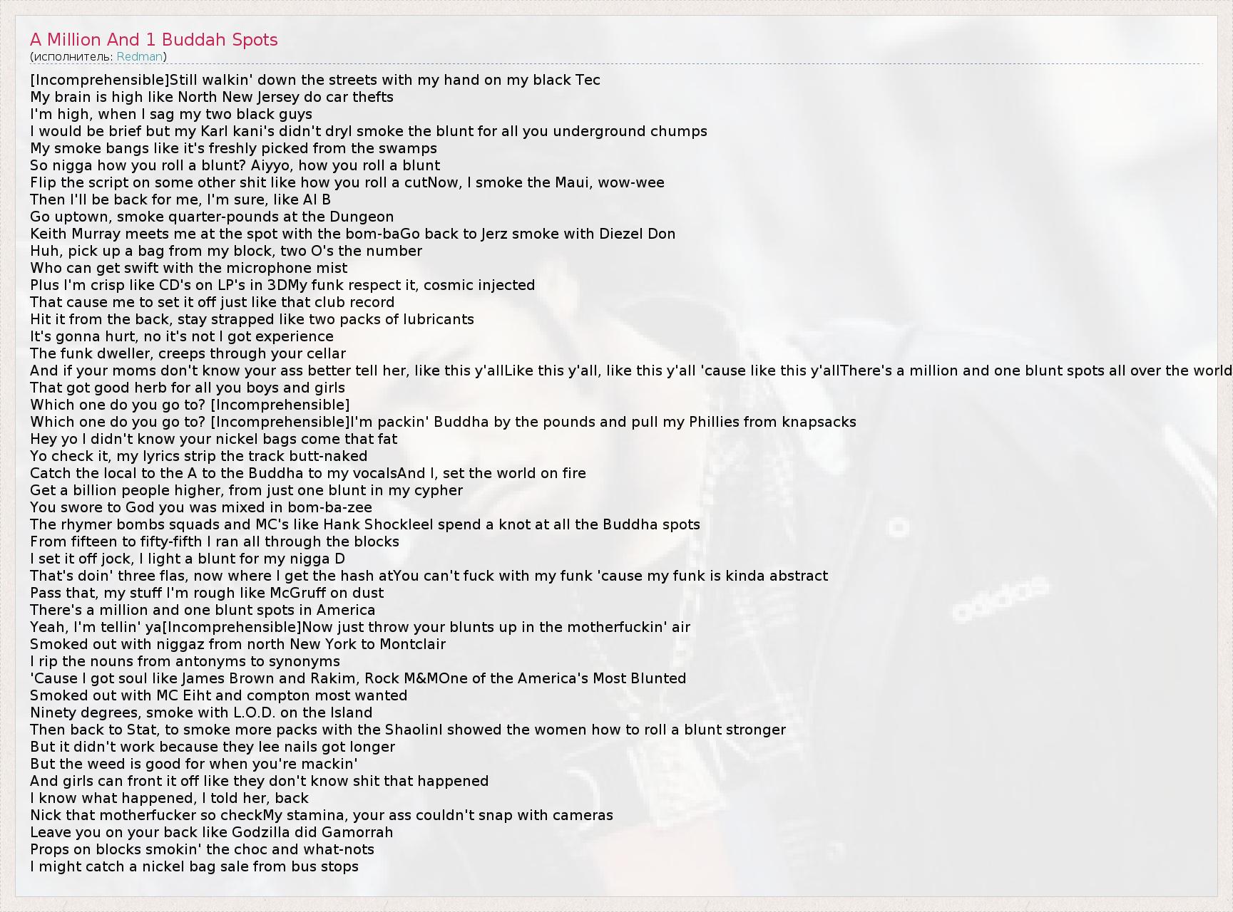 ГлавнаяИсполнителиRedmanA Million And 1 Buddah Spots