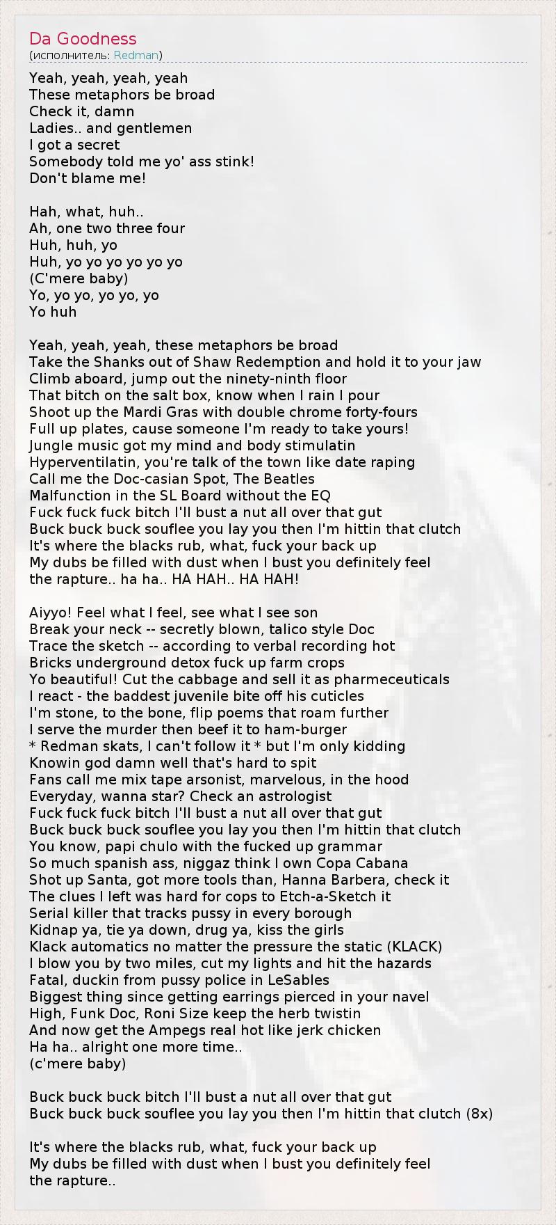 А как ты думаешь, о чем песня "Da Goodness" ?