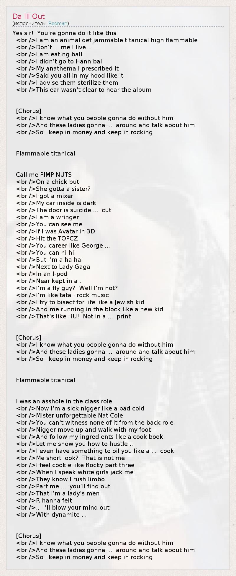 А как ты думаешь, о чем песня "Da Ill Out" ?