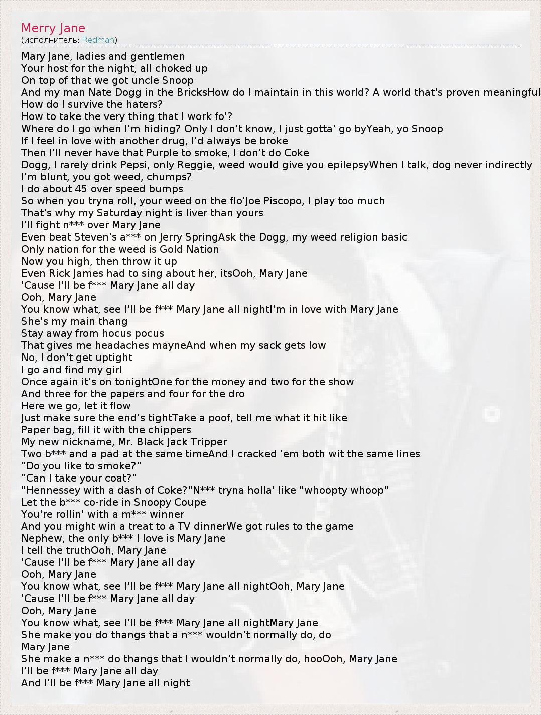 А как ты думаешь, о чем песня "Merry Jane" ?