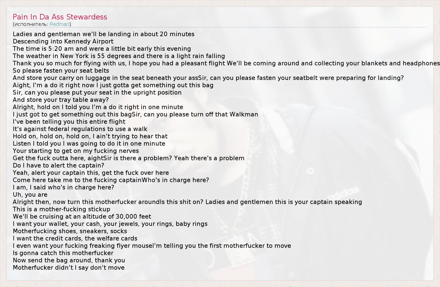 А как ты думаешь, о чем песня "Pain In Da Ass Stewardess" ?