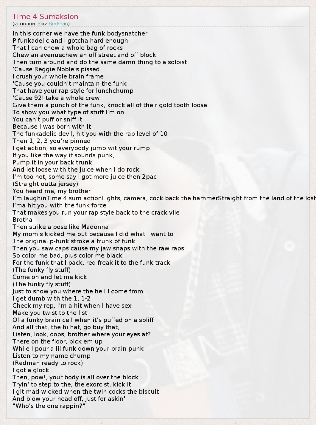 А как ты думаешь, о чем песня "Time 4 Sumaksion" ?