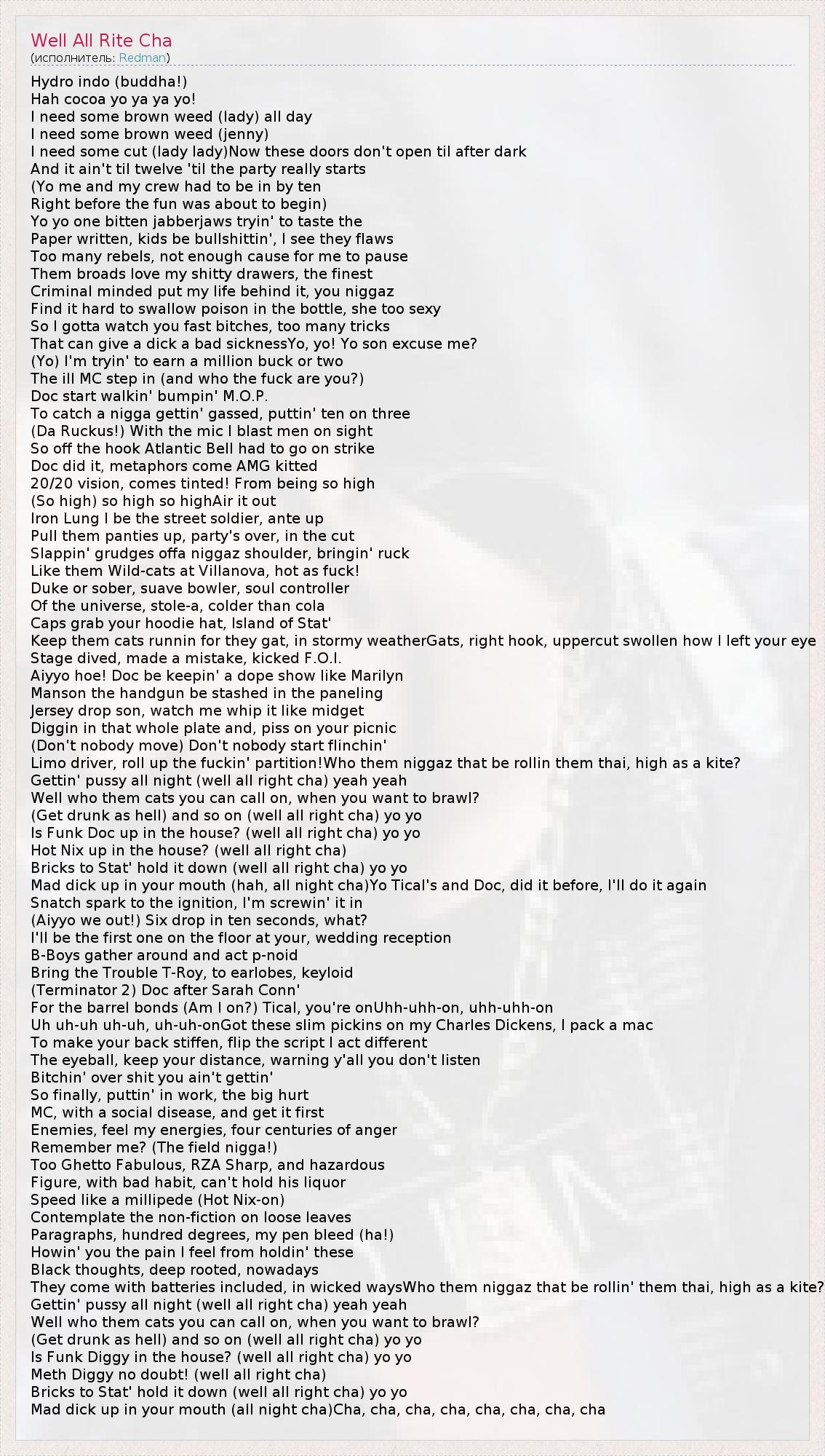 А как ты думаешь, о чем песня "Well All Rite Cha" ?