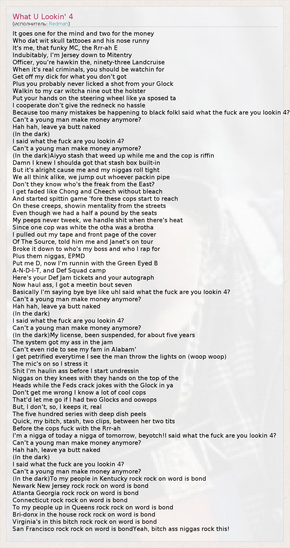 А как ты думаешь, о чем песня "What U Lookin' 4" ?