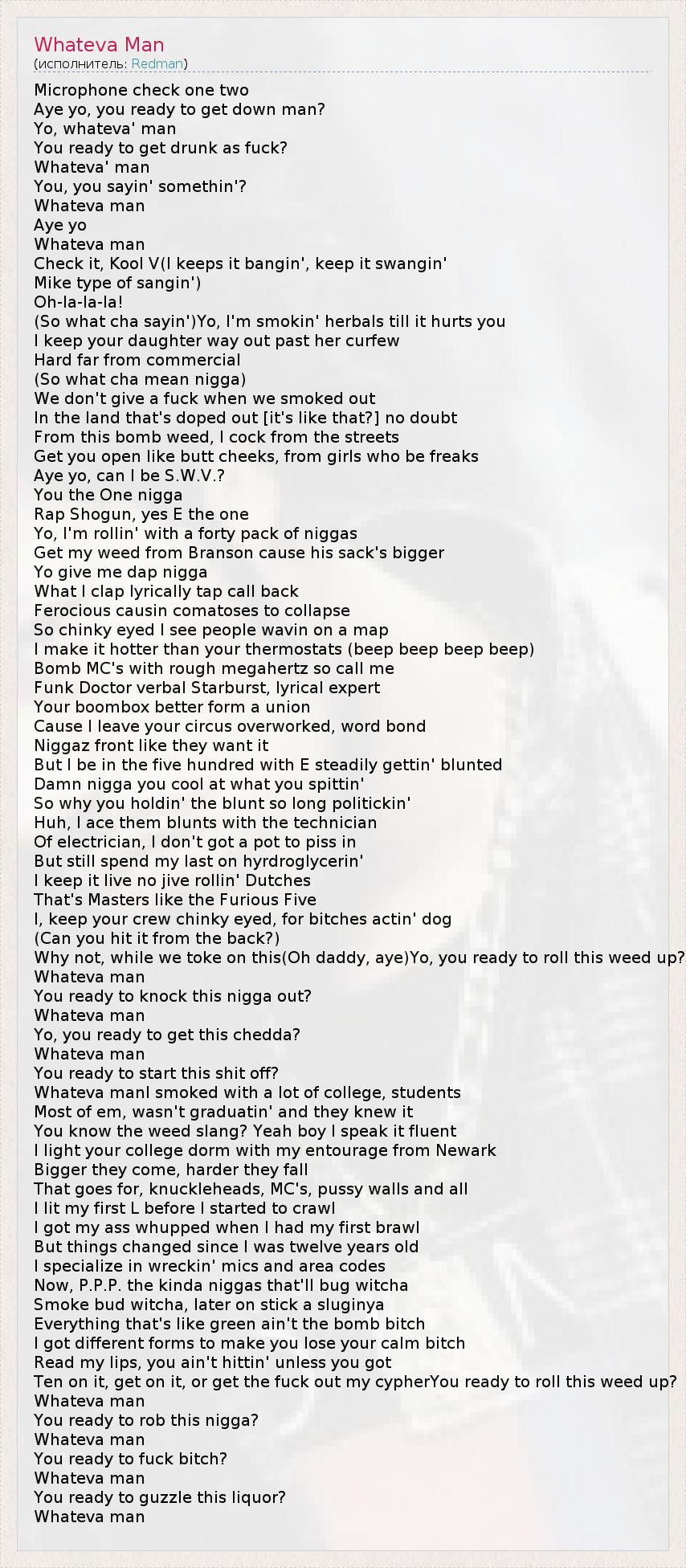 А как ты думаешь, о чем песня "Whateva Man" ?