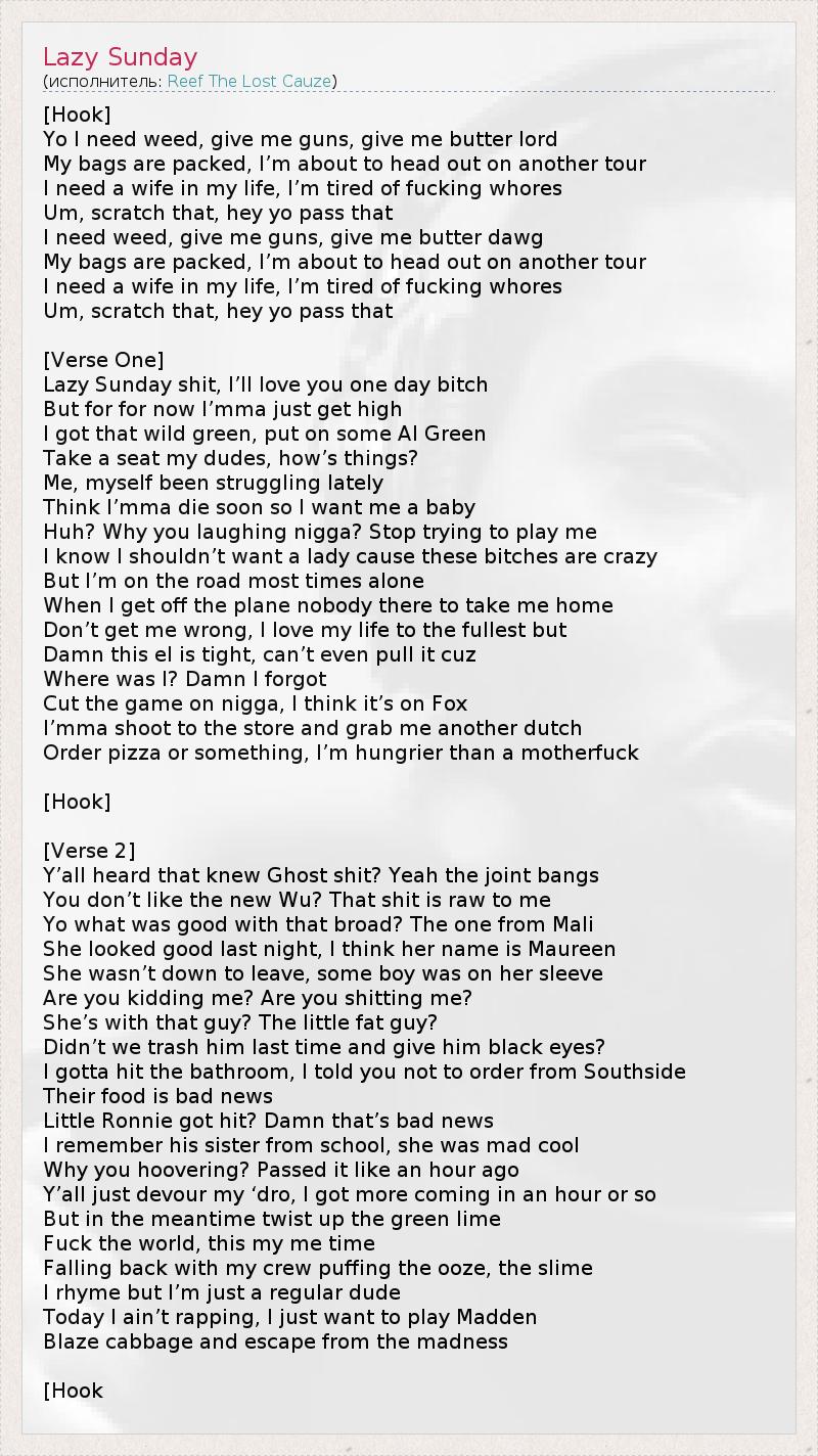А как ты думаешь, о чем песня "Lazy Sunday" ?