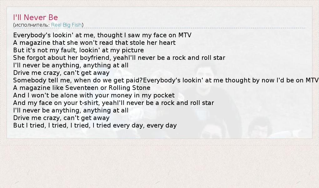А как ты думаешь, о чем песня "I'll Never Be" ?