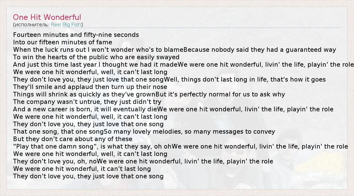 А как ты думаешь, о чем песня "One Hit Wonderful" ?